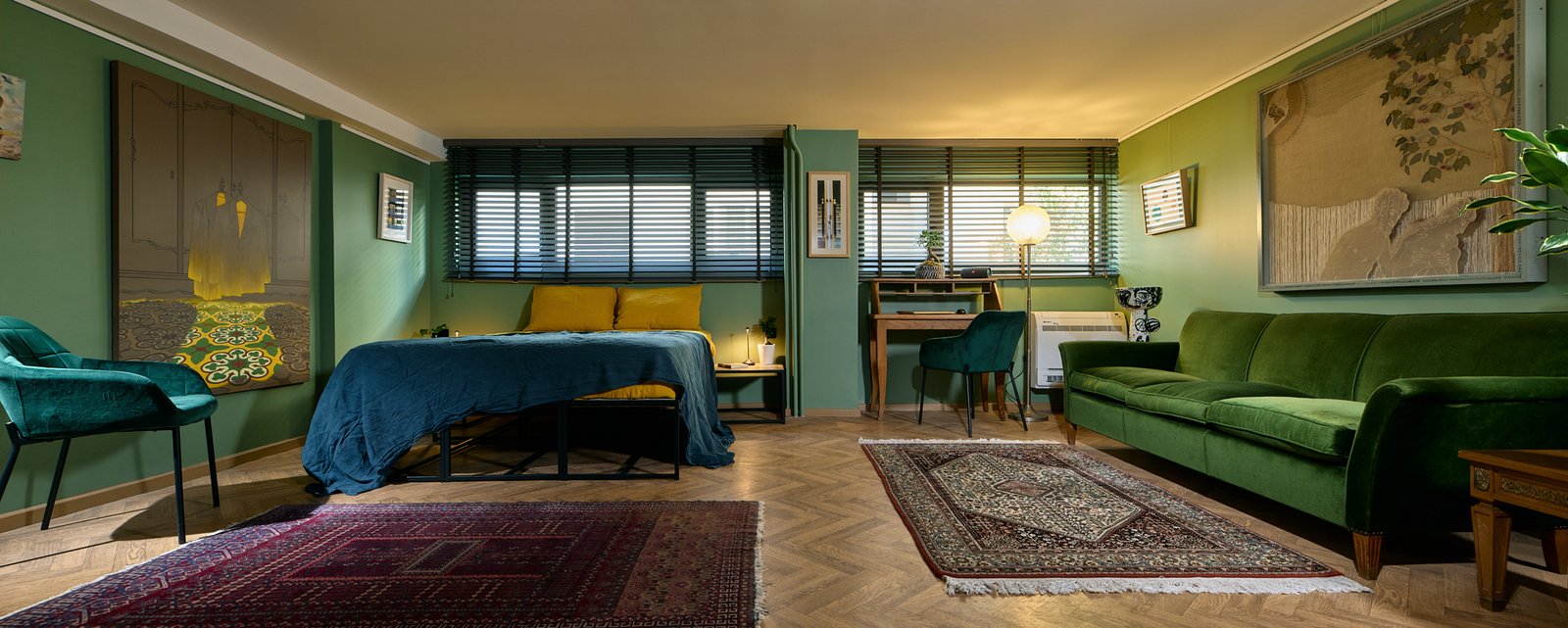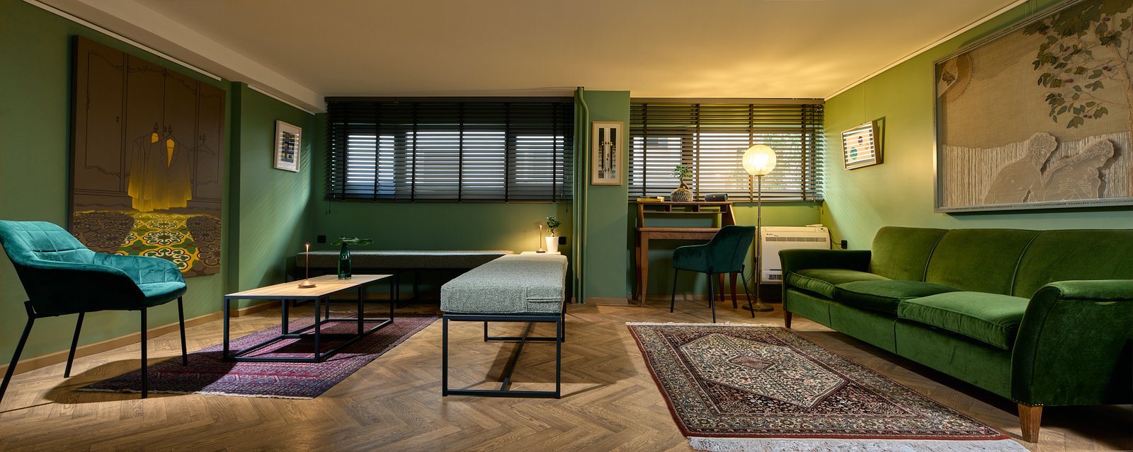 Decorated with original art, vintage furniture and fully equipped for all kind of events.